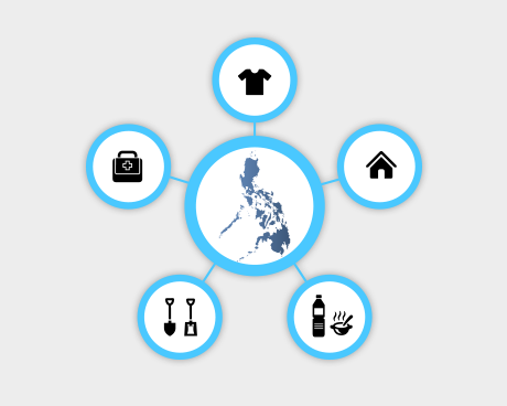Pinoy Relief will raise funds to be used for the benefit of Haiyan victims – either through Pinoy Relief's own programs or through grants to NGOs – that will focus on three priorities: